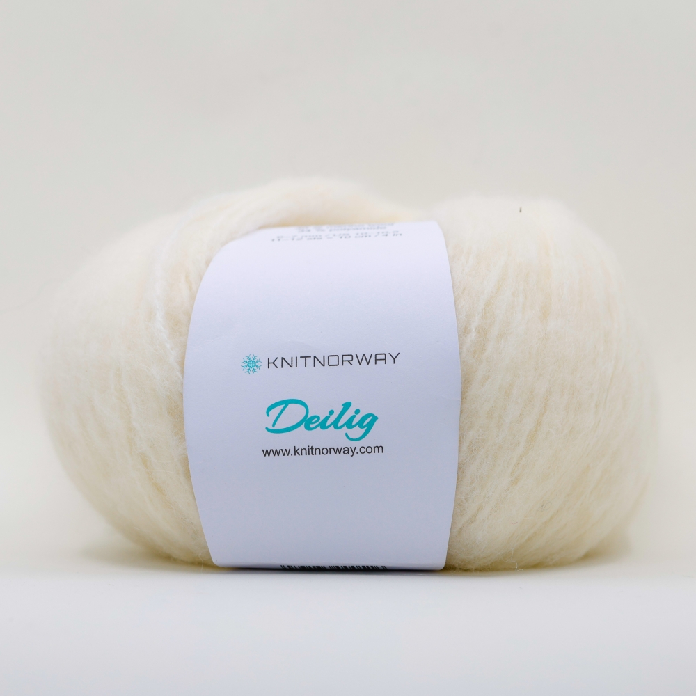 KnitNorway Deilig garn består av 36% baby alpaka 30% merino ull og 34% polyamid (tråden i midten som håller garnet i sammen).